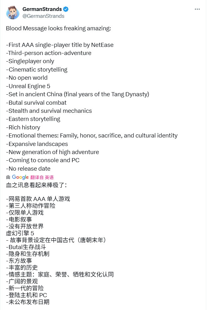 6月20日,网易公布了单机新作《归唐》,这款3A单机游戏立即引起了海外玩家的关注。一名玩家称赞《归唐》简直就是“神秘海域5”。